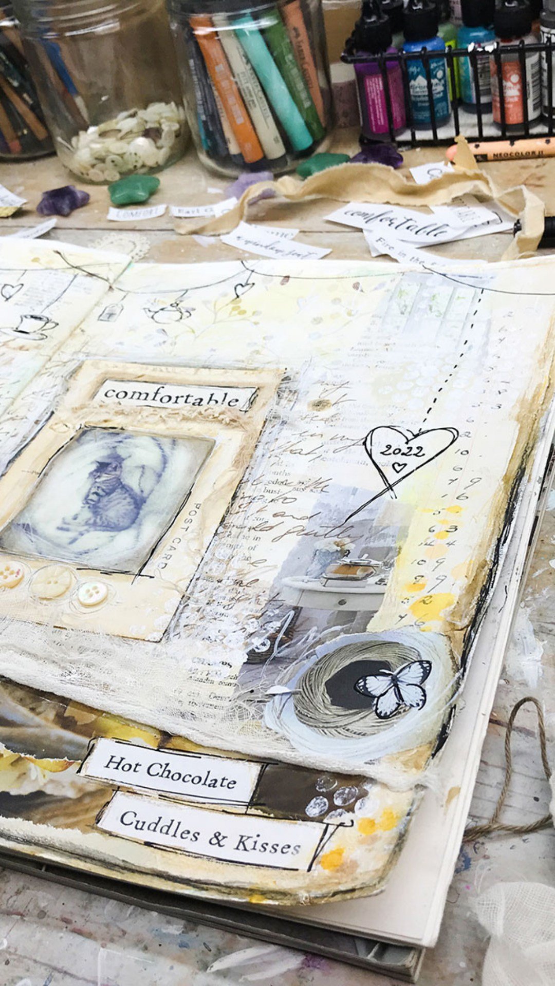 Watch a full art journal page unfold from start to finish, from a simple bundle to magical layers!