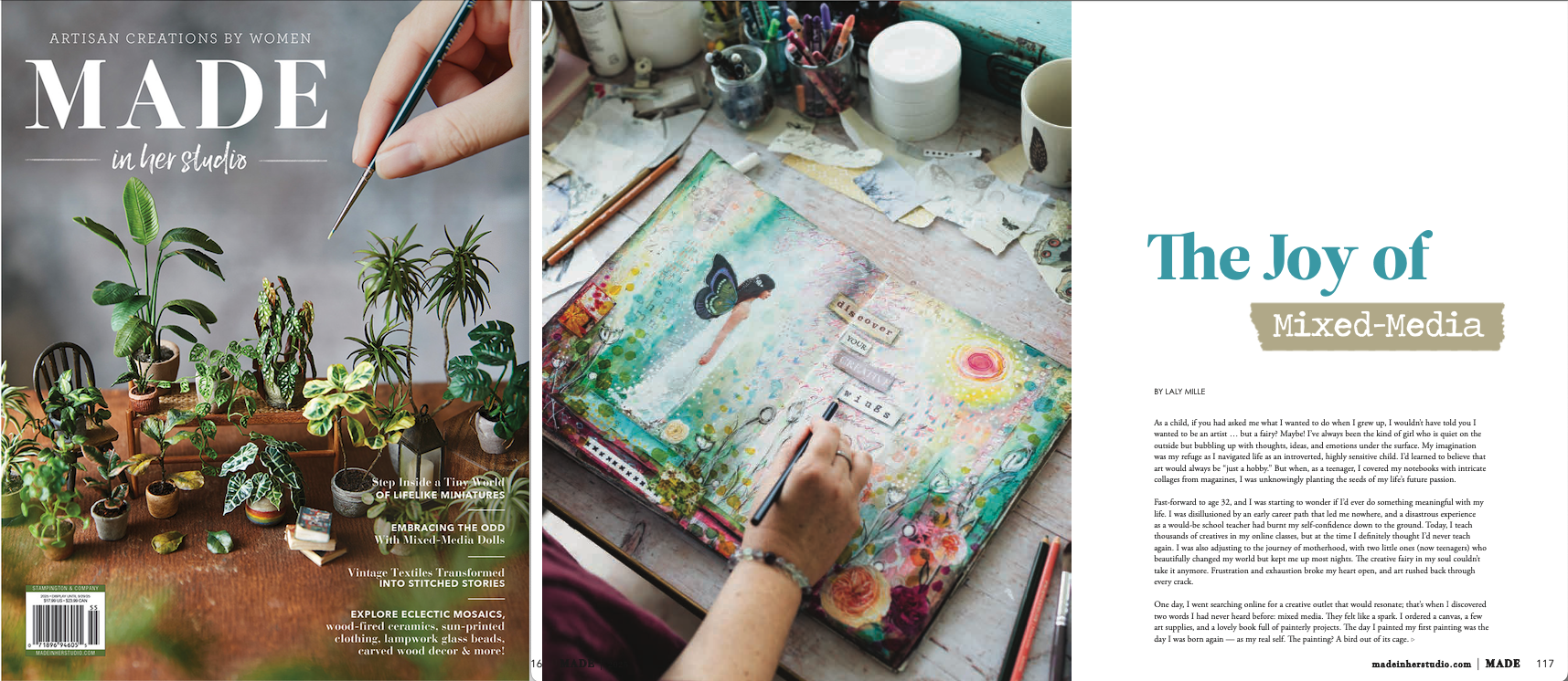 I’m thrilled to have my art and story featured in the very first issue of a brand new Stampington magazine: “MADE in her studio” !