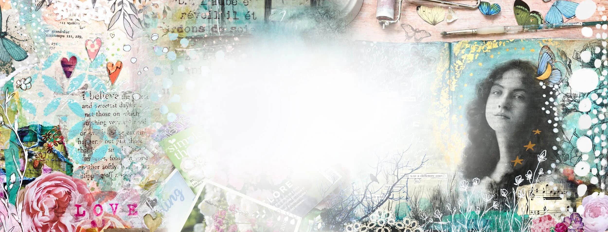 In Transfer Stories, you’ll discover the magical world of image transfers. These techniques allow printed images to blend softly into layers of color and texture, creating pages that feel rich, ethereal and full of story.